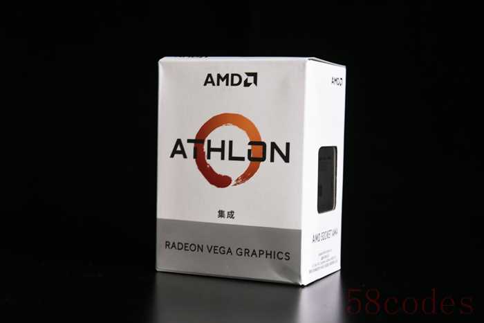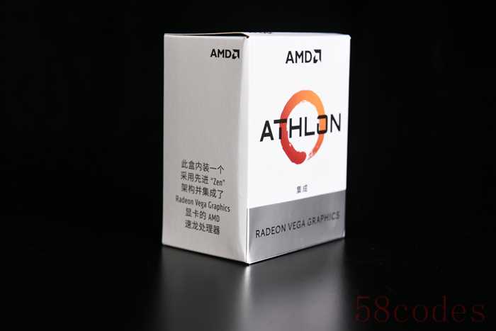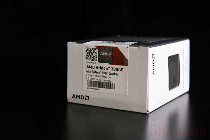 速龙200GE外包装其实相当小巧、简洁,高度跟我们常见的330毫升罐装可口可乐接近,看上去就像是一瓶白色的无糖可乐。正面只是简单的写着速龙(Athlon)的品牌,底部标注着继承Radeon Vega Graphics核显。在侧面我们可以看到处理器封装表面的铭文:Athlon 200GE,下面这些适配AM4插槽。包装的贴纸标记着核心、线程数,还有基础频率。