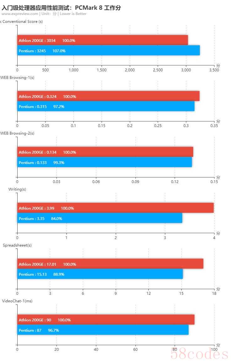 经过以上的测试,相信大家对于两颗处理器已经有足够的认识,因为核心规格、主频的限制,英特尔奔腾G4560处理器在基准性能、基础运算、常用应用方面有优势,具体在15%-20%以内,但是在数字内容创作、游戏性能这些跟核显有关的方面,速龙200GE的优势真的是太明显,虽然Vega 3的规格已经是很精简的,但是依然能够远远超出HD Graphics 610很多,就这方面来说,适合入门数字创作者、游戏玩家的首选。