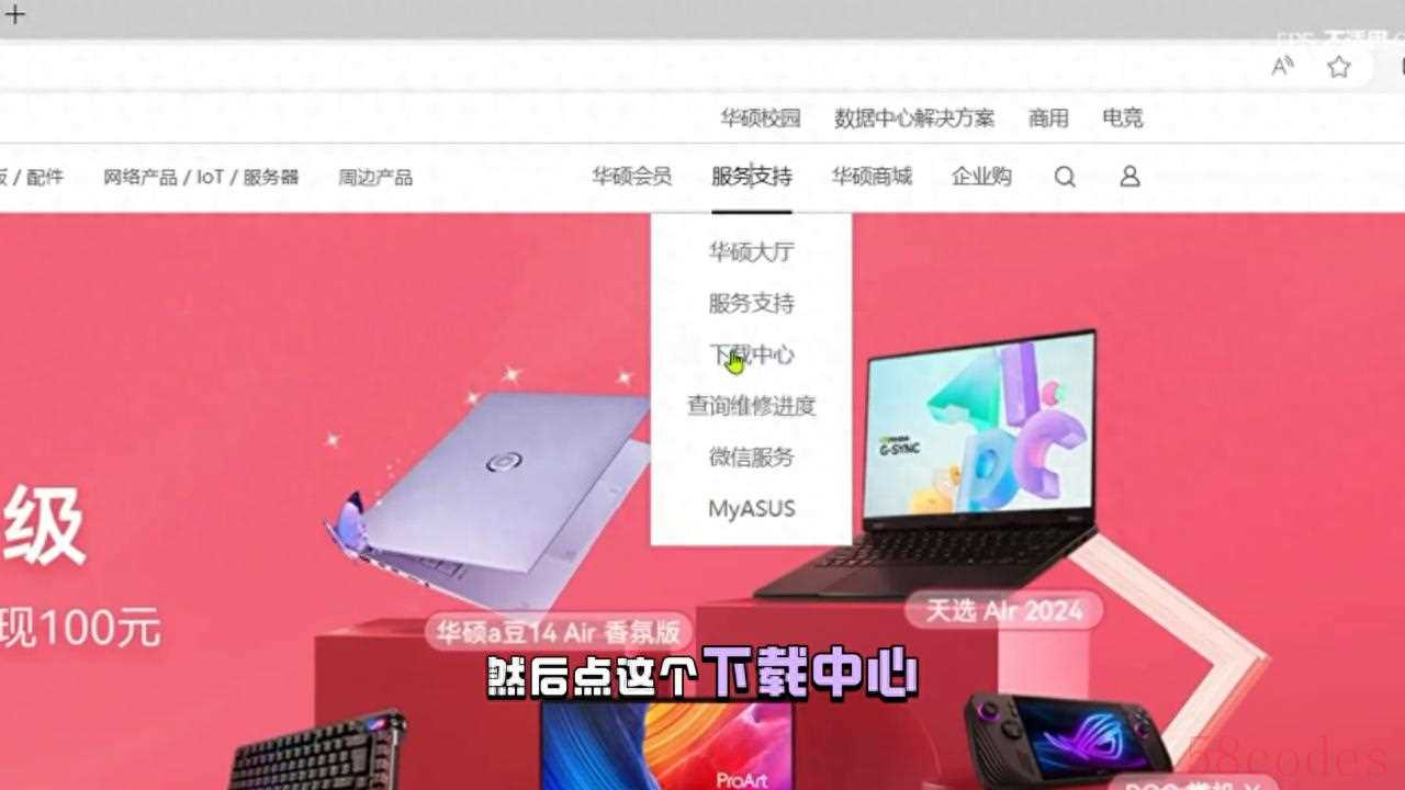 ·首先搜索华硕,找到华硕的官网,在官网里面找到服务与支持,点下载中心,在这里搜索主板的型号。