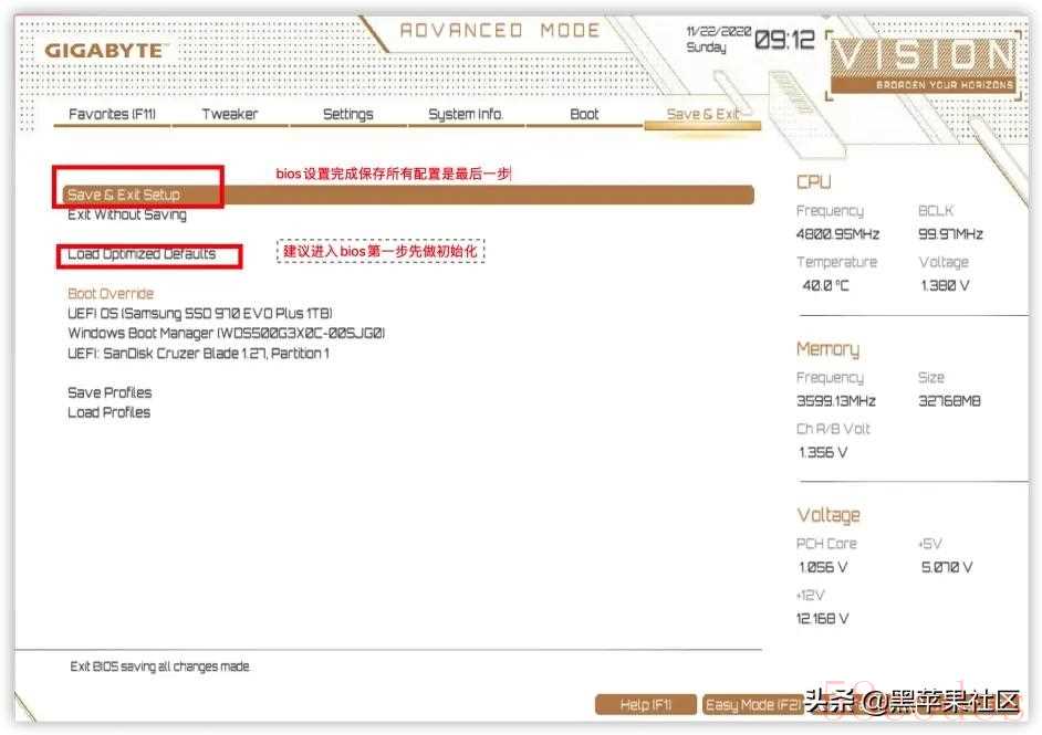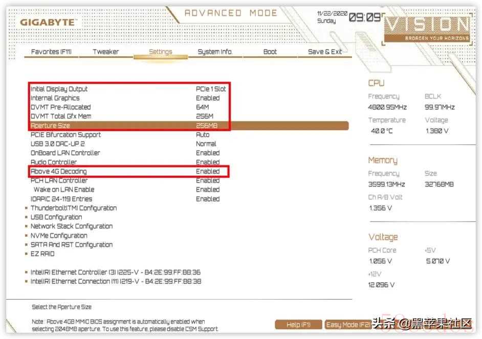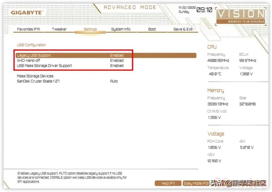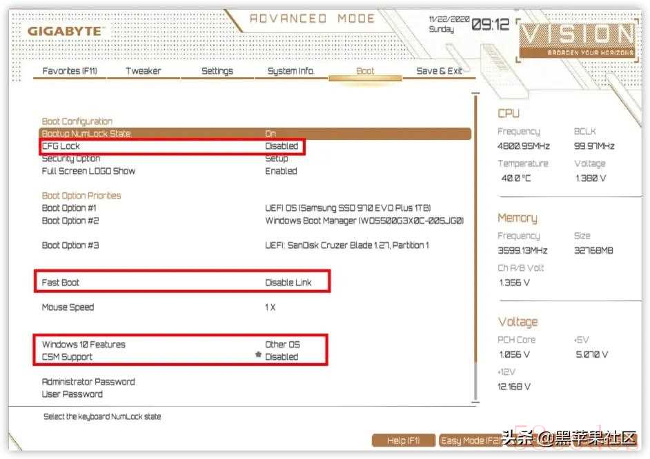 XMP开启Tip4按F10保存所有设置完成BIOS设置PC自动重启之后,按键F12快速选择U盘来启动安装MacOS 。最后,祝大家都能一次性安装黑苹果成功!!!Tip5最后有一个提示,技嘉主板最新bios版本已经提供CFG LOCK开关。