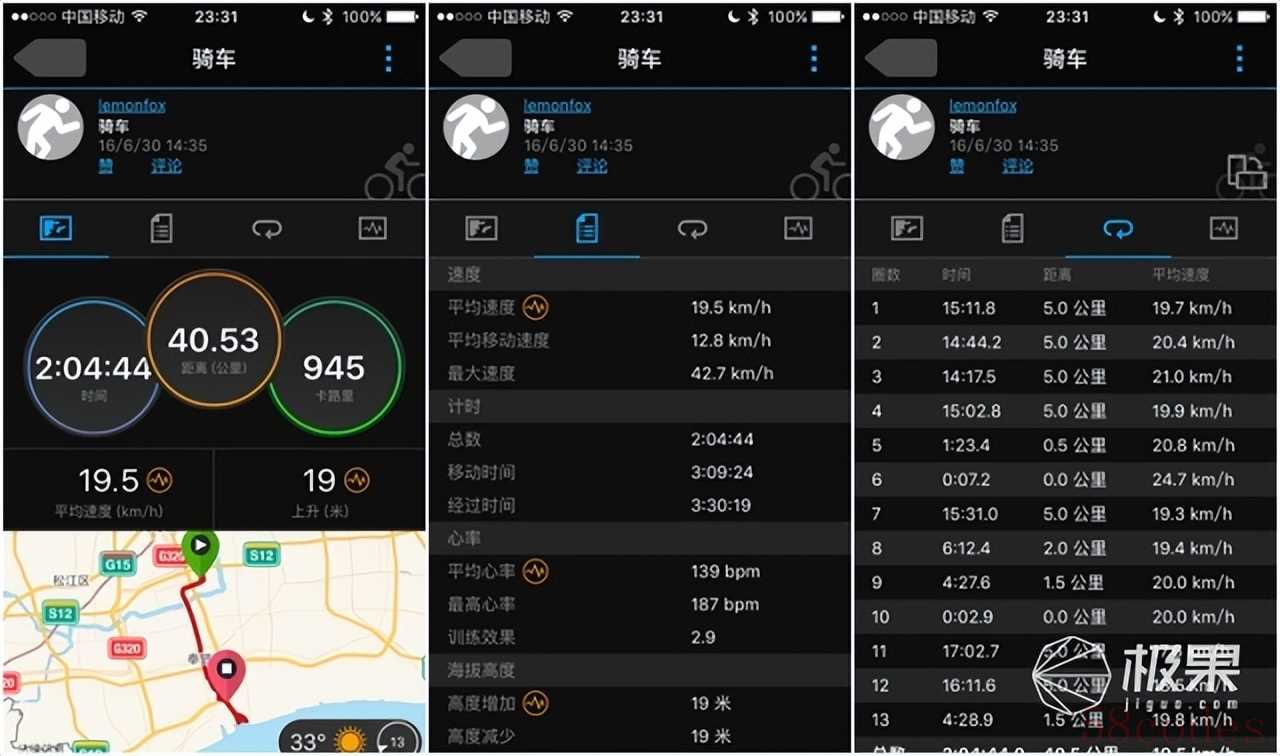 看我在骑行间的数据记录,运动距离,运动时长,当前时速,这些都是基础数据,当然还有其他数据,比如圈数,比如心率等。