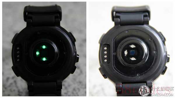光学心率部分依旧凸起状的设计,用来提供更紧密的贴合性。之前在225上的遮光胶圈的设计应该不会再回归了,不过遮光罩其实还是更巧妙的被引入了,同样在测试部分再详细说。