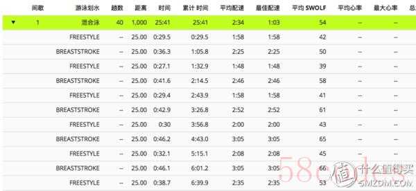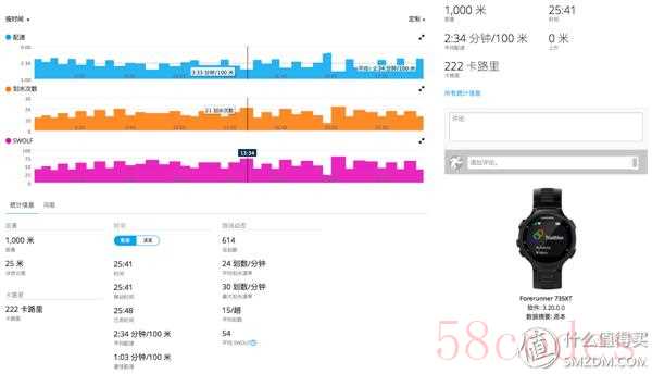 游泳的基本测量数据如上图所示,如果搭配HRM-Tri和HRM-Swim心率带的话还会有心率曲线出来。
