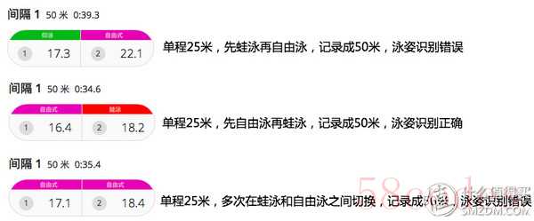 可以看到只要在单程中变换泳姿就很容易出现多记一趟的情况,而且泳姿识别也容易出错。