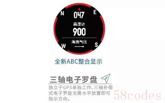 登山是一项比较有挑战的项目,危险系数有所增加。所以数据要求更多、更准确,佳明飞 5 拥有三轴电子罗盘。而且是独立于 GPS 信号的,不用水平放置就能指示方向。