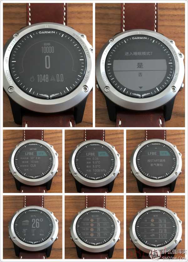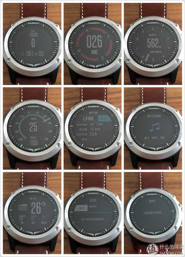 上图除了遥控Garmin摄像机的VIRB小工具我没设置显示以外,其他的全部显示出来了。这里要注意的是,在手表没有开启蓝牙和手机连接的时候METAR天气报,音乐控制,天气,日历和通知这5个小工具即使设置显示也不会出现在表盘中。关于蓝牙的连接细节在下文有介绍,这里就不做讲解了。