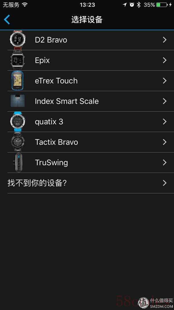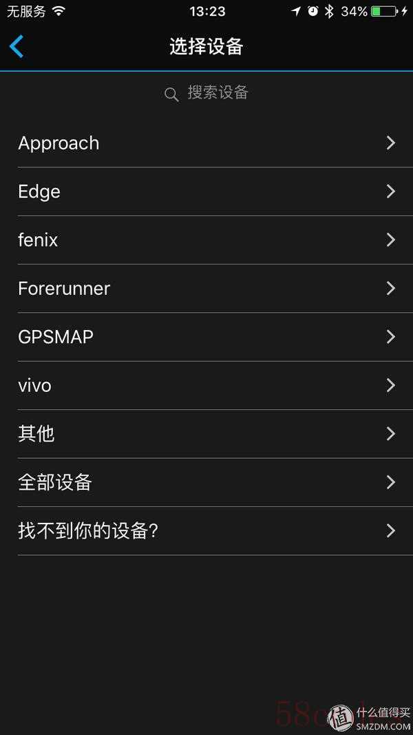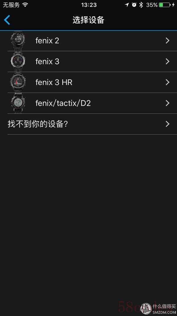 但进入Fenix后,无论选择fenix3还是D2我的手机始终搜索不到手表的蓝牙信号。最后我退回到选择设备的界面另辟蹊径点击“其他”才找到了正确的选项。