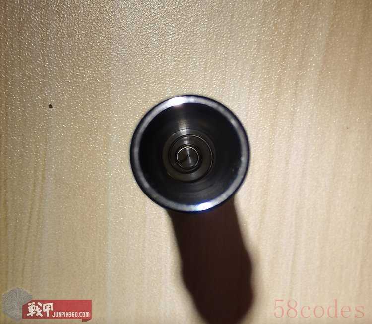 灯筒内部负极的镀金弹簧。得益于CNC机加工技术,接口处丝毫没有毛刺划手。虽然筒壁厚度不到1mm,但在小直径的加持下,仍然保持了较高的强度。厂家标称的防跌落高度虽然只有1米,但实测了一次2米跌落,也能保持正常使用。