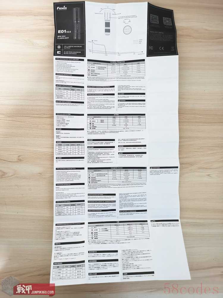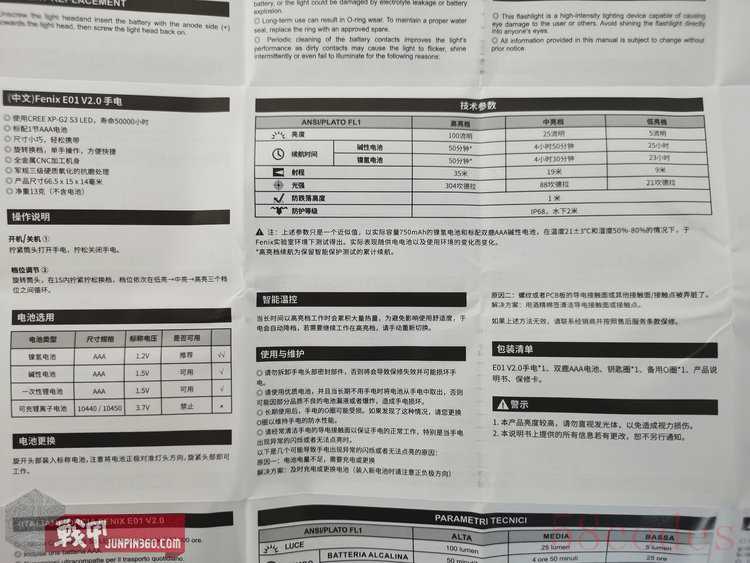 中文说明,值得一提的是,里面提到了E01 V2.0有一个智能温控模式:长时间使用高亮模式以后,会自动降低亮度,以避免高亮带来的高热情况。