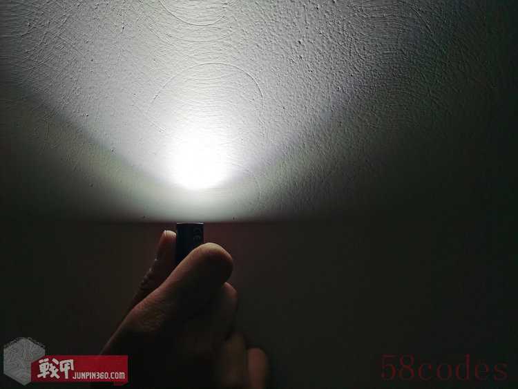 上图为距墙约6米(+0.5米)室内光照效果图。根据厂家说明低亮模式照明距离可以达到9米,不过因为低亮只有5流明,在9米的距离上测试时,肉眼只能是感受到这个距离的白墙上有光影晃动,已无法借助光源判别物体,相机也拍不出区别。不过高亮模式在室内9米的距离上还是能分清物体轮廓的。在室外实测时,因为受背景光及最近浮尘天气的干扰,低亮模式下2米外就已经不能分清手电光和背景光的区别了;高亮模式则是在6米处左右。虽然难以满足大众对于所谓“强光”手电的期待,但是在这个体积下,做到这样已经比用手机强很多了。另外,低亮模式在近距离识读文字时,还是很柔和不伤眼的,中高亮度反而会有些刺眼。