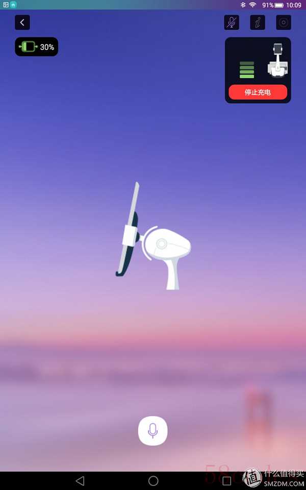 点击软件首页的“机器人控制”,进入以上界面后,点击顶部的麦克风图标,就会进入声控模式。此时底部会出现一个像siri一样麦克风图标,点击该图标后,图标会动起来表示正在监听命令,这时候说出控制命令就行。点击屏幕顶部的i标志,也就是麦克风图标旁边的图标,就可以看到目前支持的语音控制命令。