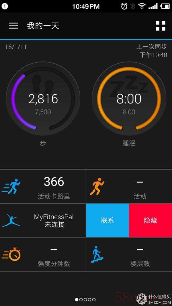 值得一提的是在快照页面可以选择和另外一个APP“MyFitnessPal”进行连接,共享数据,来增强健康参考。在这个APP里可以输入一日三餐的卡路里等各种数据,结合HR提供的睡眠、步数等内容,实际上还是可以实现比较不错的健康管理功能的(尤其是对减肥比较敏感的妹子们)。可惜就是要操作多个APP,多少还是麻烦了点。