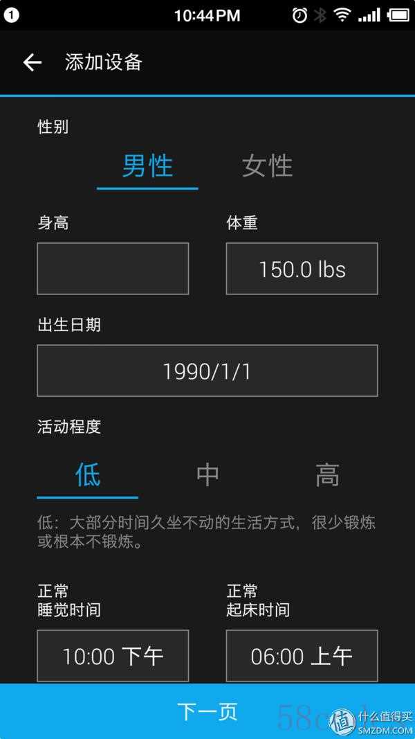 点是,按照提示选择自己的设备后,开始设置各种个人资料。