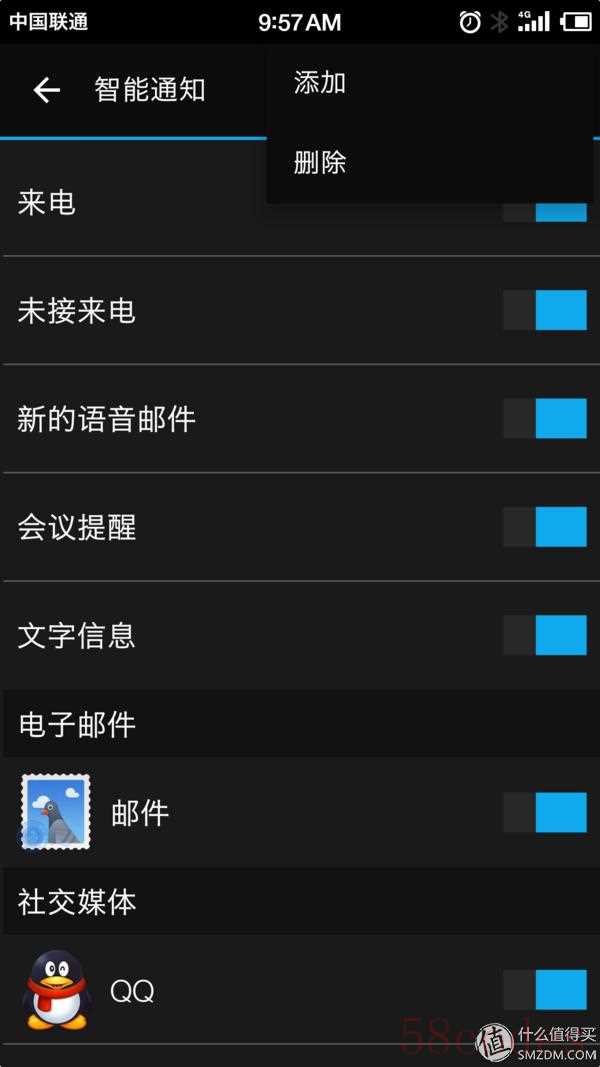 默认的是系统级别的一些内容以及QQ和微信,不过点击右上方菜单-添加,就可以将自己喜欢的APP通知功能推送到HR啦!