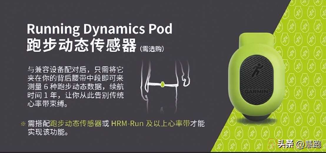 对于跑表比较了解的跑者都知道如果要想评估跑姿,需要借助一些穿戴式传感器,佳明叫做小绿豆、此外佳明心率带内置运动传感器也可以测量心率;