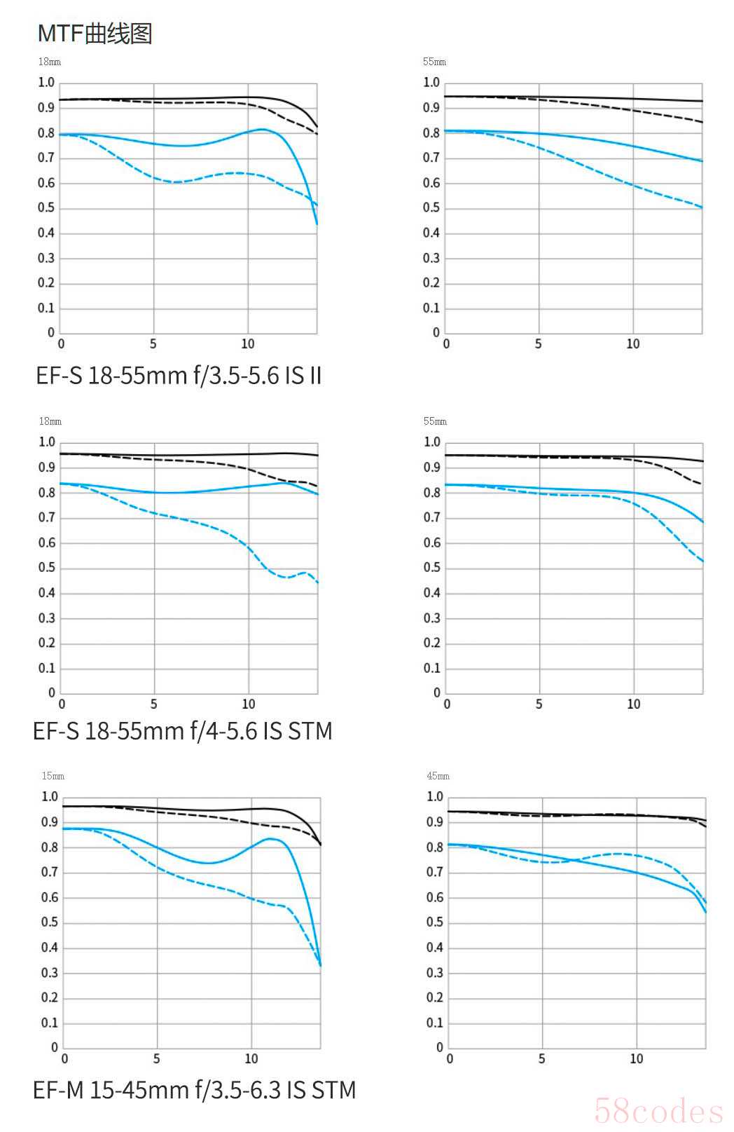 MTF曲线越高、越平直、虚实线重合度越高,镜头成像素质越好