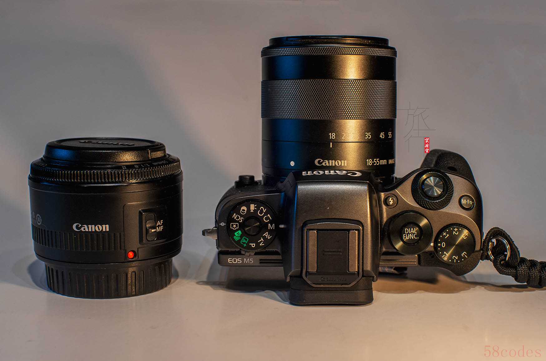 佳能小痰盂50mm/1.8标头和EFM18-55mmSTM体积对比。