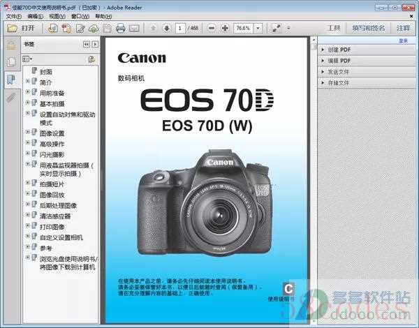 在搜索引擎(如 百度、谷歌)中搜索 "佳能 EOS 70D 说明书 PDF" 或 "Canon EOS 70