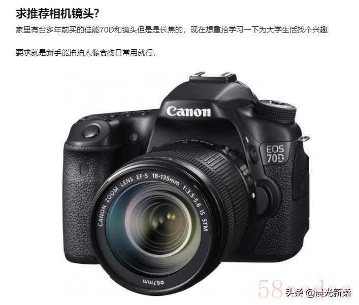 如果不想入定焦镜头的话,非要变焦镜头的话,可选的镜头会非常多,价格差距也非常大!考虑是佳能 70D 的机身来使用的话,加钱太多的话,显然不合适,而 24-70MM 这个焦段一般是牛头,价格都老贵了。就算是副厂的适马、腾龙,价格也不算便宜的,显然和新手锻炼这个目的相悖。综合起来考虑,老一代的镜头可能是兼顾画质和花费的平衡之选。