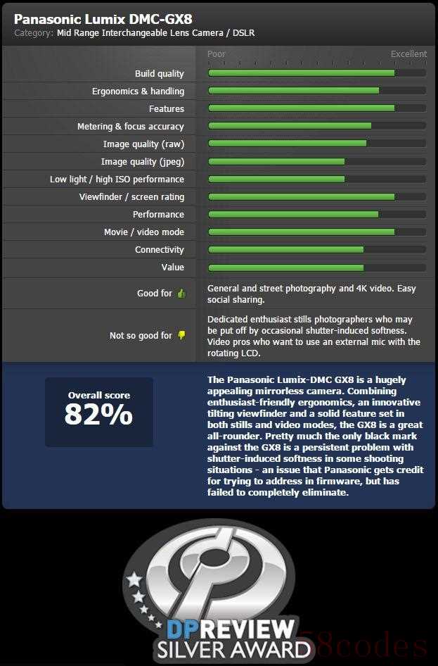 Dpreview对松下DMC-GX8进行了测评,给出了如下评价: