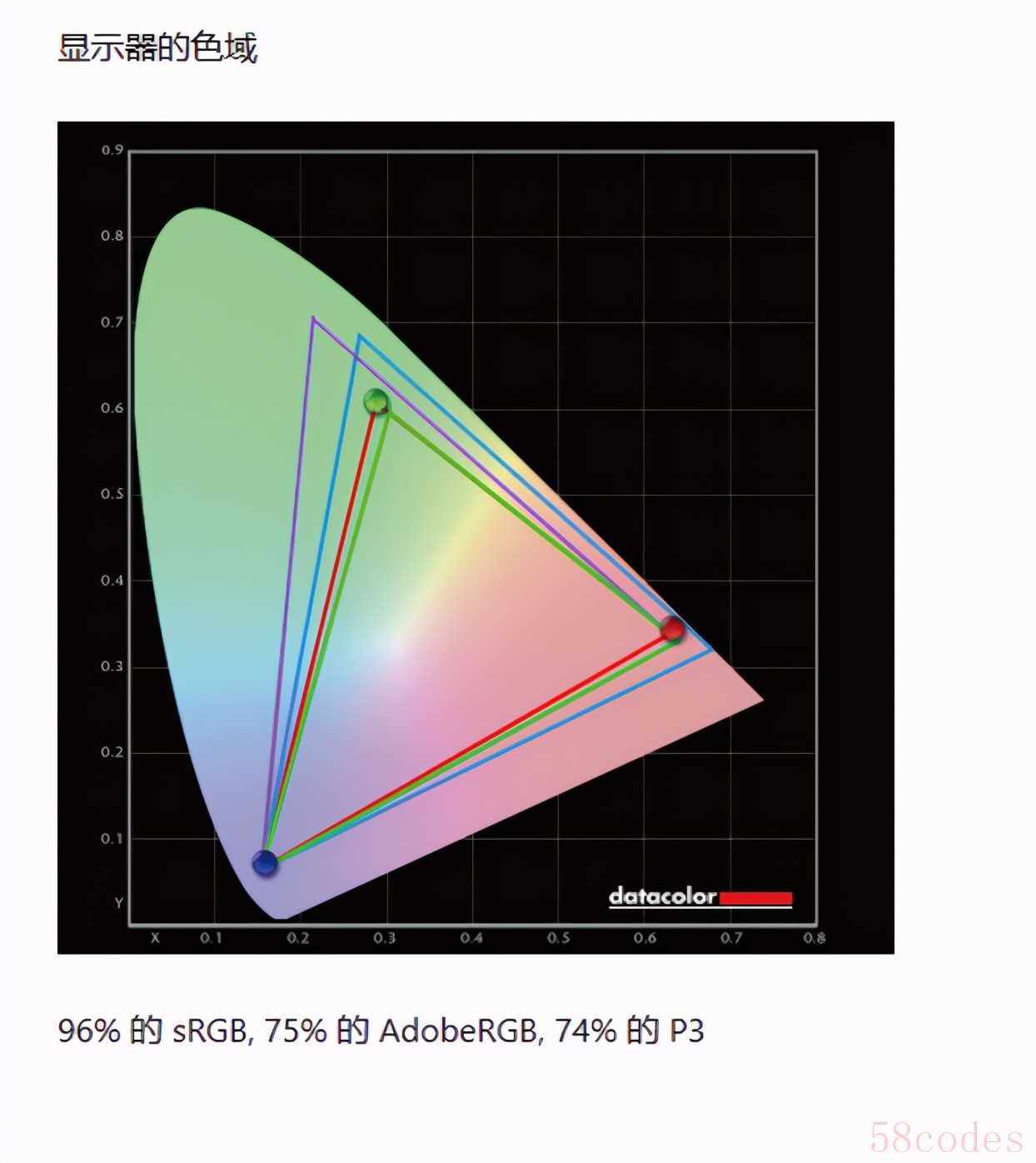 ▲实测屏幕的sRGB色域覆盖面积为96%。