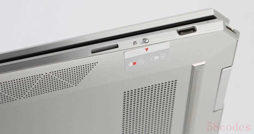 另外,目前很多轻薄本都会在屏幕顶部的摄像头上设计一个物理“阀门”,方便用户遮挡摄像头,防止隐私泄露。惠普则另辟蹊径将摄像头的开关设计在机身右侧的接口处,我们只需拨动机身右侧的物理拨片就能方便地开启或者关闭摄像头。另外,这台机器还支持指纹识别和红外人脸识别功能。