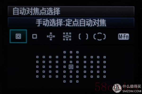 5D3上的对焦点选择,6种自动对焦区域模式,分别为:单点自动对焦、定点自动对焦、61点自动对焦、4点扩展自动对焦区域、8点扩展自动对焦区域和区域自动对焦。