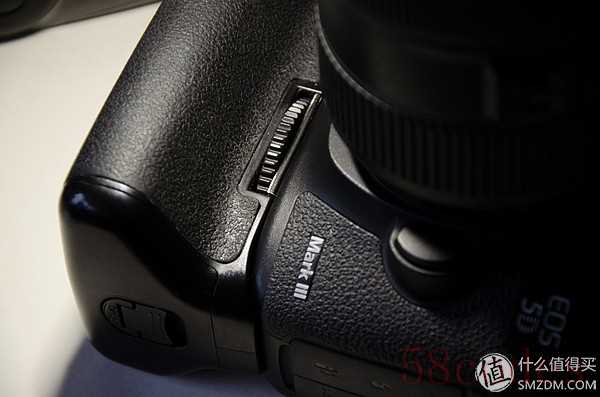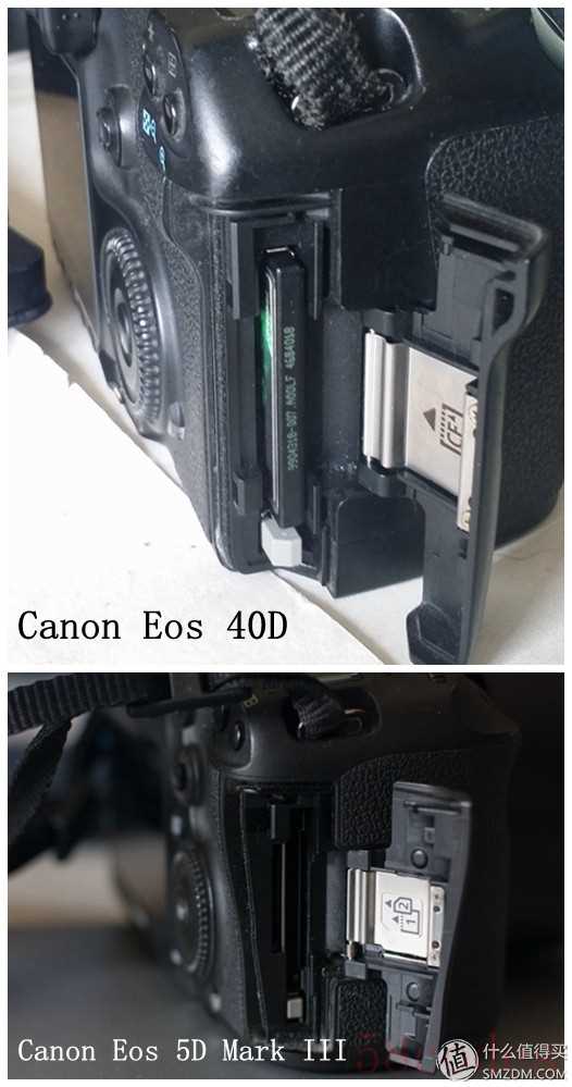 5D3的按键是放在侧面的,40D是放在底部的。开关键一个是在肩部一个在底部。