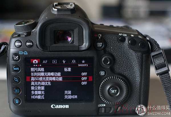虽然5D3的肩屏稍大些,但肩屏的信息量是差不多的,肩屏的照明键位置有所改动。个人比较喜欢这种方正的肩屏。