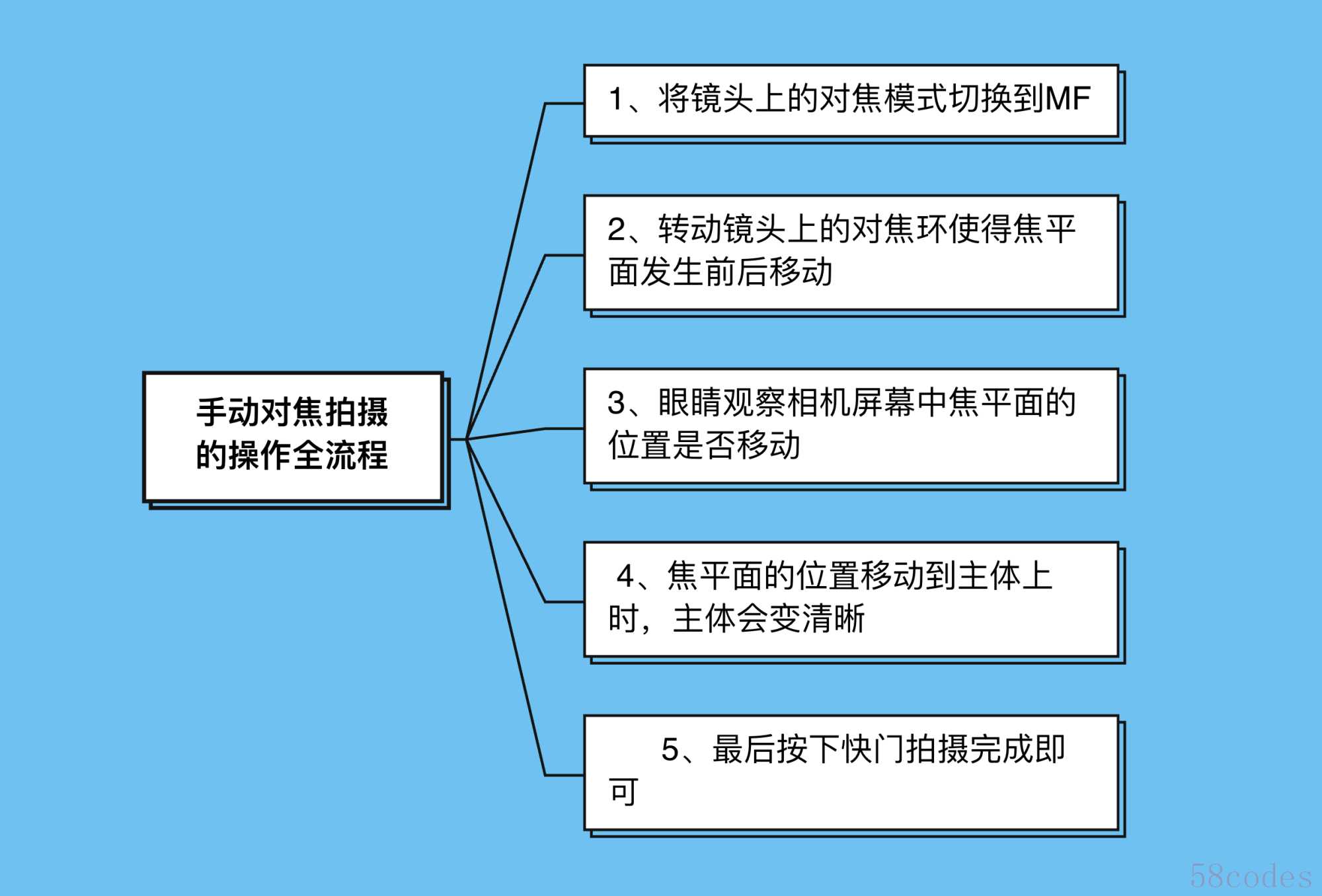 相机手动对焦拍摄的操作全流程: