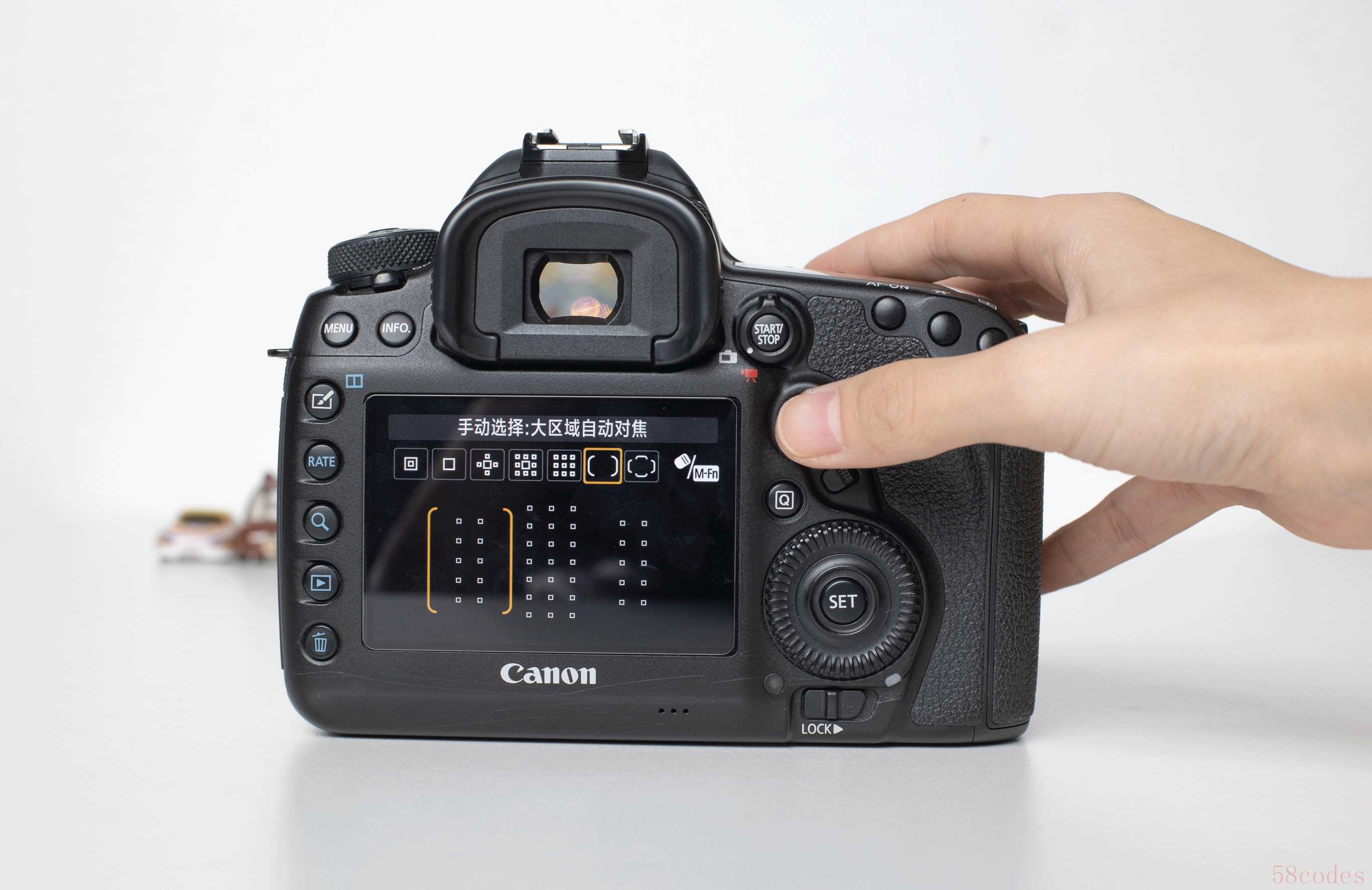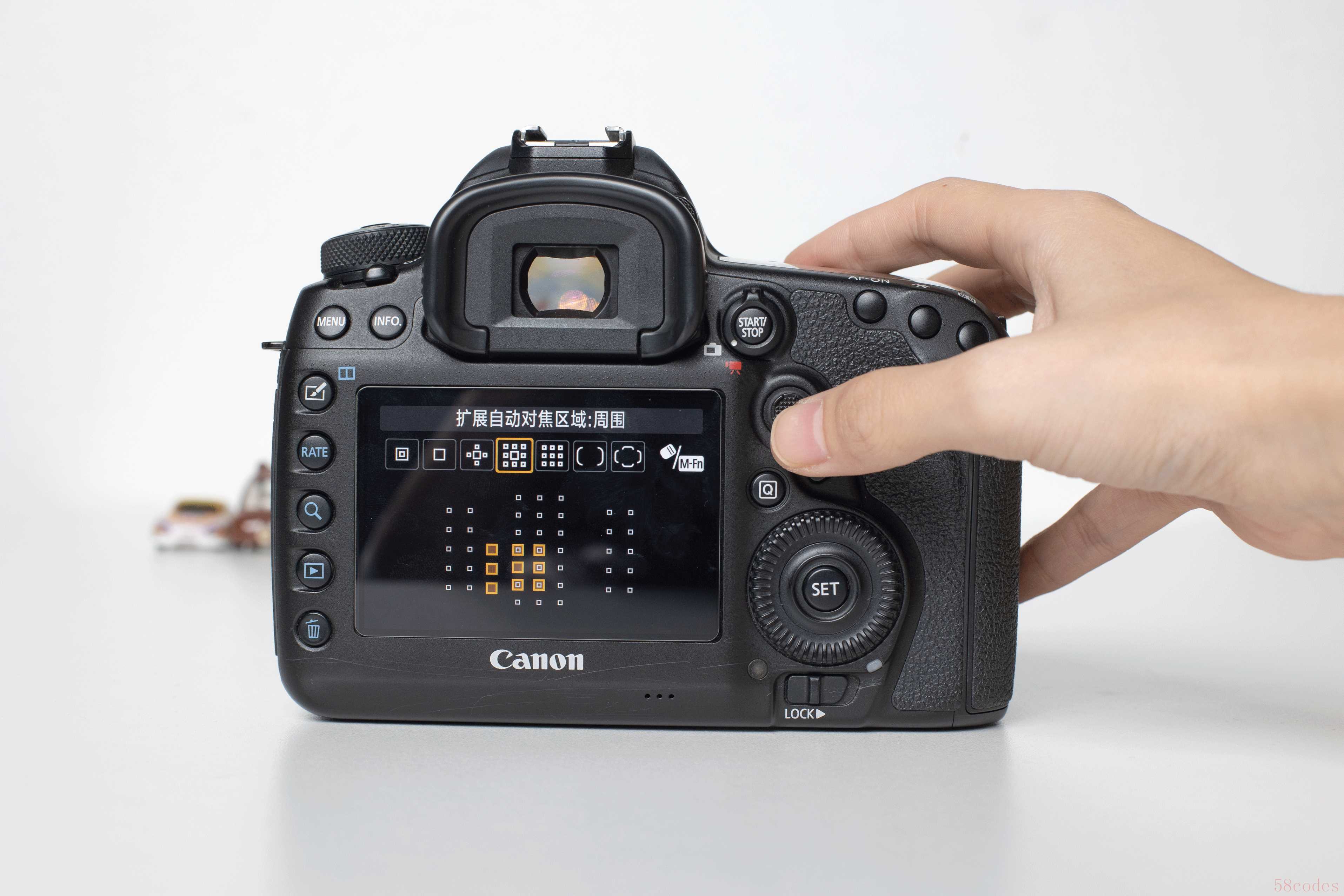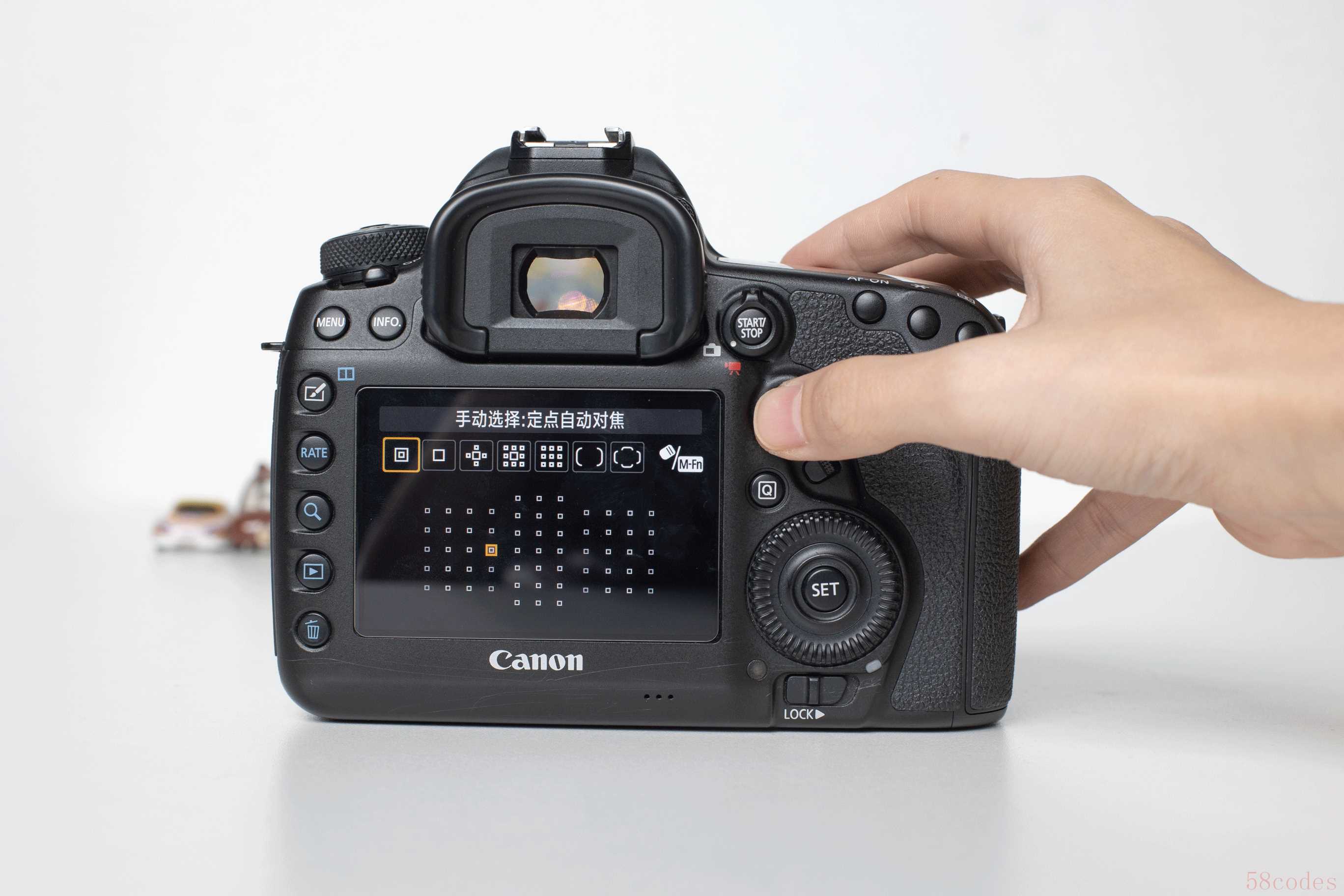 以佳能5D4为例,这里演示单点自动对焦+AF-S的全流程,大家不妨拿出自己的相机跟着操作: