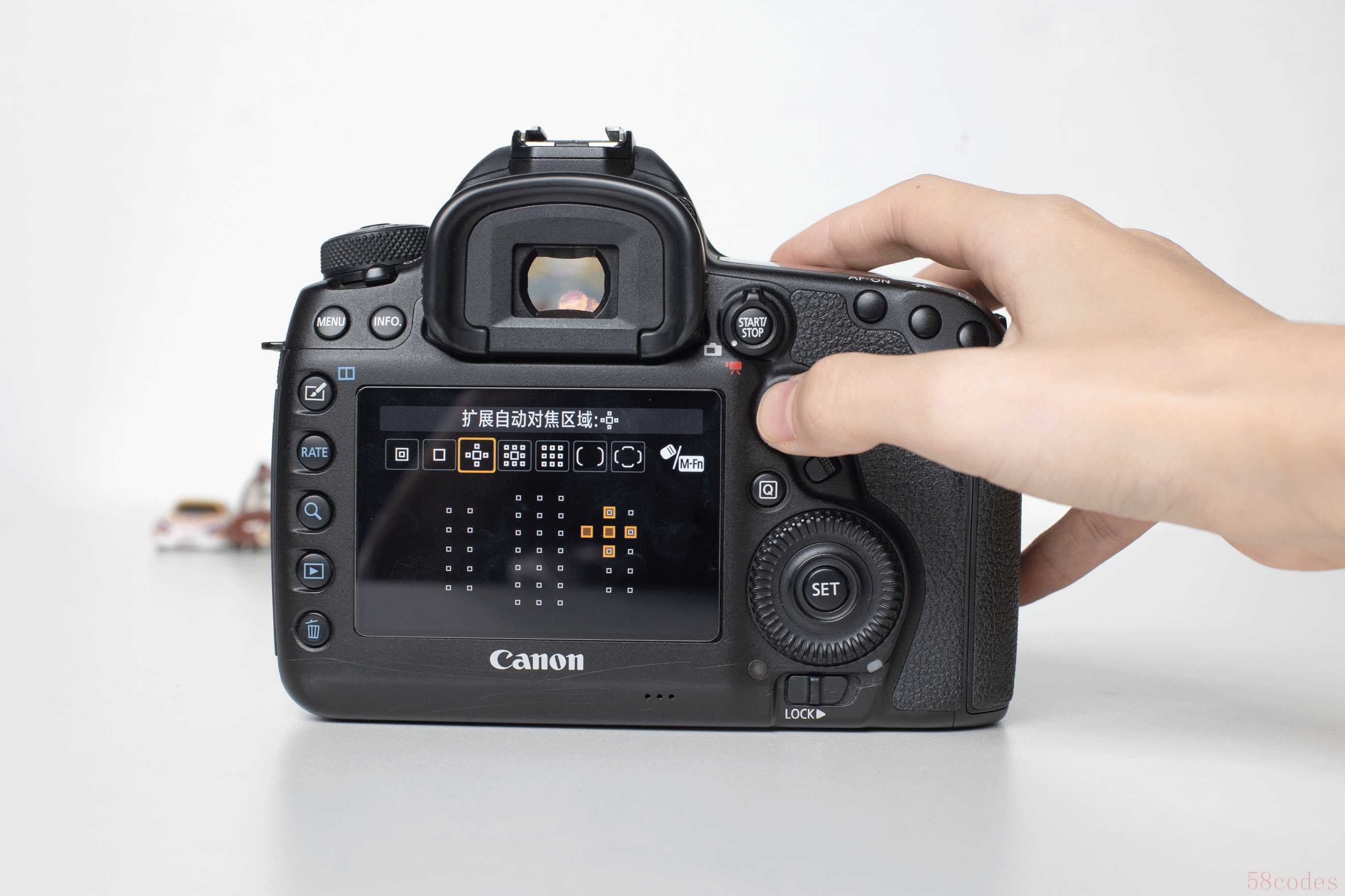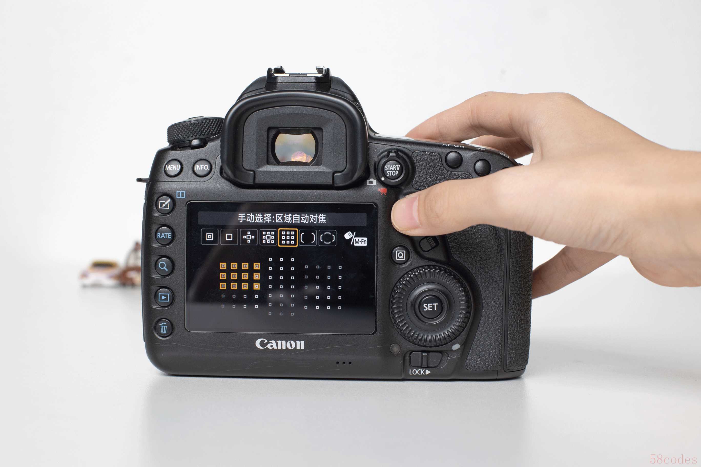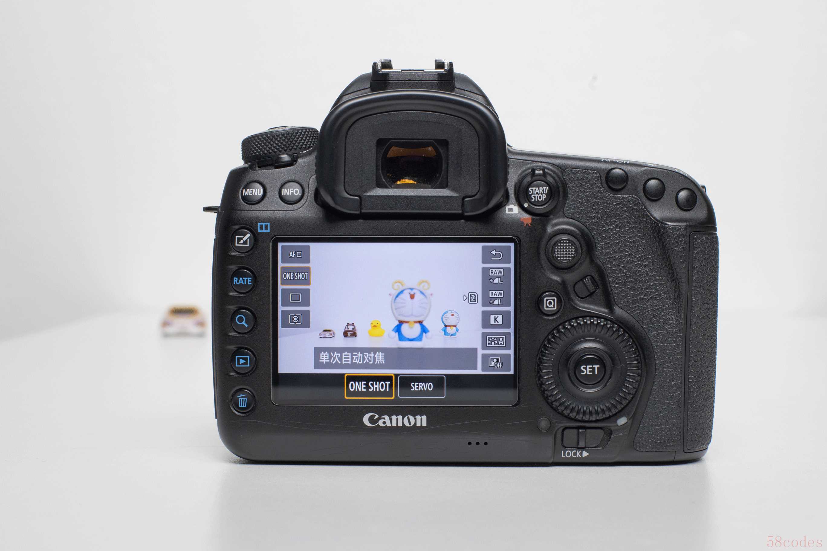 以佳能5D4为例,这里演示单点自动对焦+AF-S的全流程,大家不妨拿出自己的相机跟着操作: