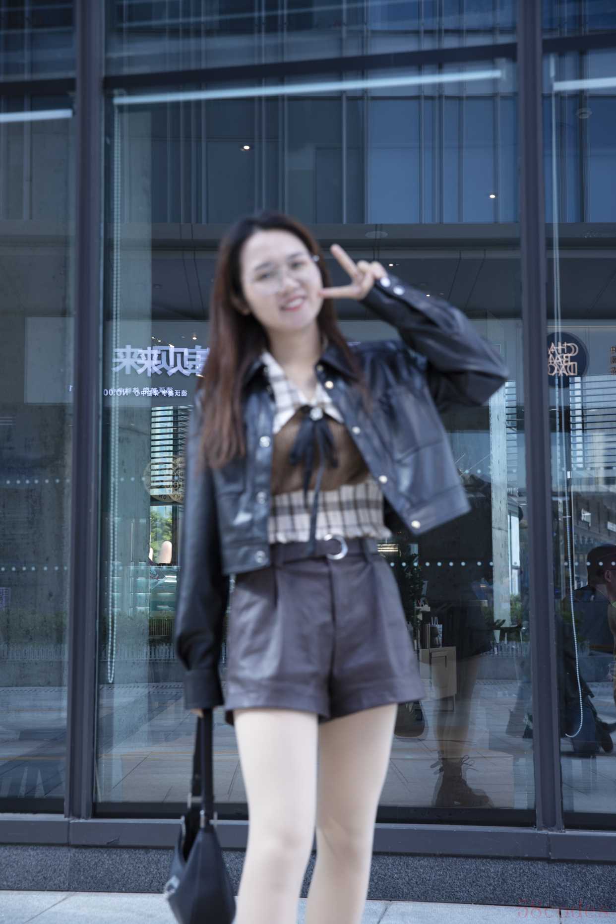 此时焦平面落在人物后方玻璃上