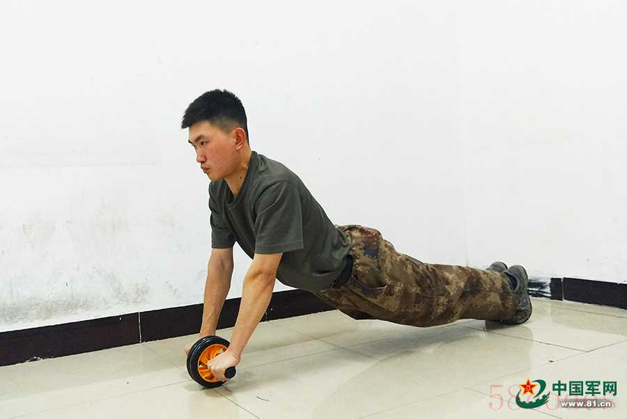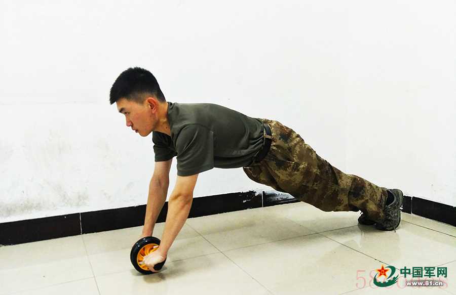 当战友们可以轻松完成跪姿腹肌轮动作之后,可以尝试靠墙腹肌轮。