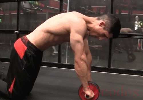 采用跪姿动作时,将健腹轮向前推动时,会明显感觉到下背部、肩部以及腹部有拉伸感,当你回收健腹轮时,将背部拱起,腹部会有一些收缩感,但是效果明显不如卷腹。