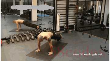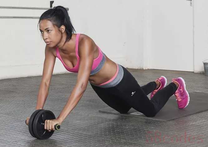 运动方式:双膝着地,吸气,双手紧握着手柄,向前推拉健腹器,同时将身体最大限度地向前延伸,然后再回到跪姿的初始原位,如此反复操作。
