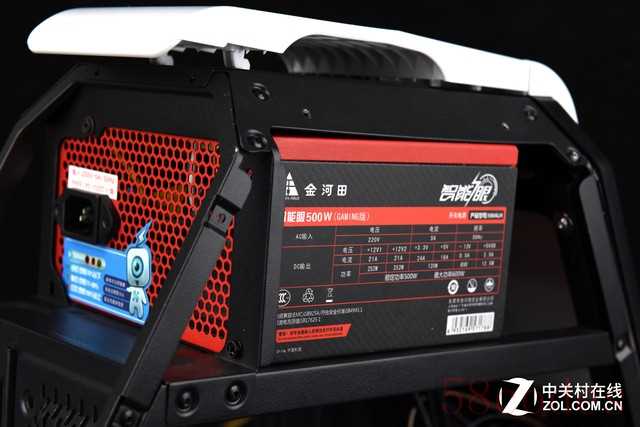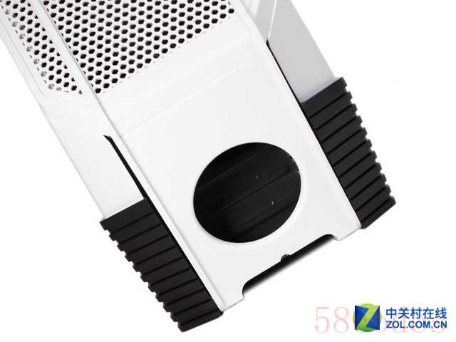 微动散热网设计还是很巧妙的,玩家可以将电源线材穿过至底部的圆形孔。起到了收纳电源线的作用。