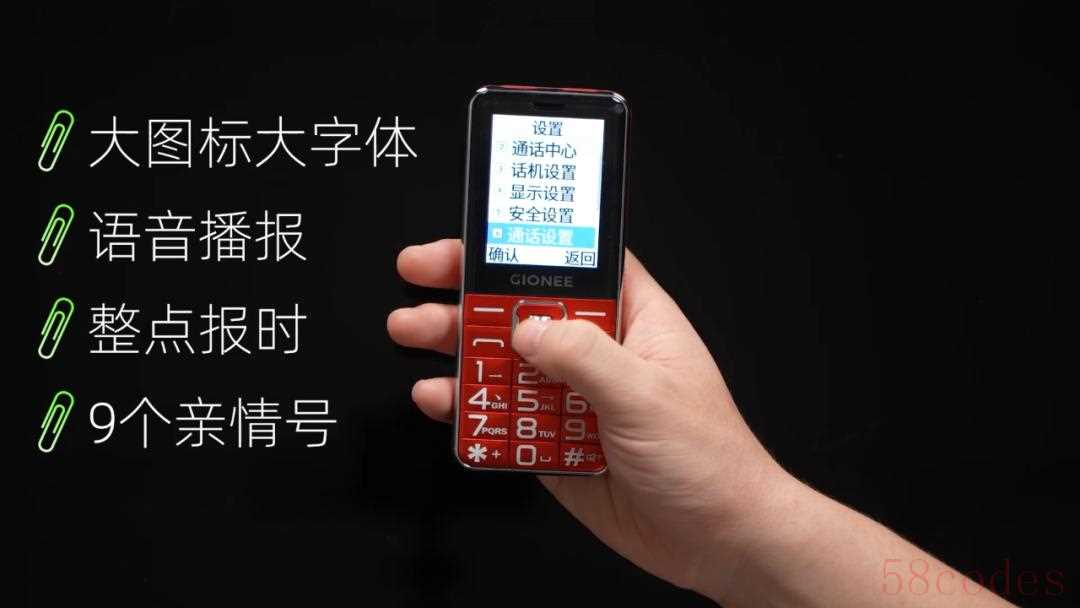 功能上,它和传统印象中功能机差不多:大图标大字体,语音播报,整点报时,你还可以设置 9 个亲情号码用于快捷拨打。