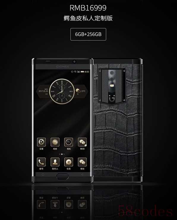 金立手机精心打造的M2017定制版,价格高到了17000元,机身采用了鳄鱼皮。