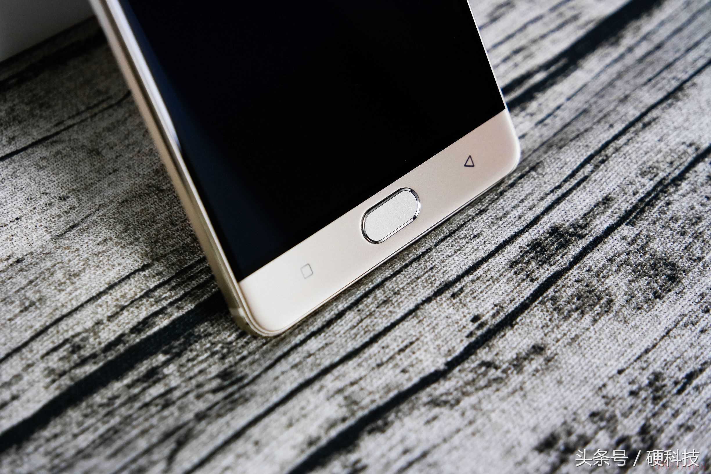 M6的下巴设有安卓机型三个传统的按键,从左到右的作用分别为程序管理、home键与返回键,其中home键采用实体腰圆式按键,带有指纹识别功能,可按压。