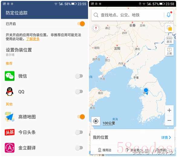 为了做测试,如图,笔者为高德地图开启了虚拟位置的功能,伪装的位置是韩国首尔,而打开高德地图之后,系统果然直接定位在了首尔。此功能除了用于反跟踪之外,其实我们更多的可以用在微博、微信等社交应用上足不出户的“旅行”,你懂的。