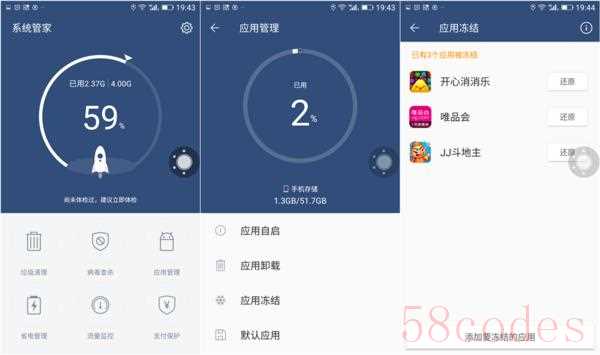 应用冻结可以把用户不常用的app“冷冻起来”,app不再会后台唤醒,也不会显示桌面图标,所以实际上更像是把app给卸载了,但当你需要这个app时只需“解冻”即可正常使用,不需要重新下载。