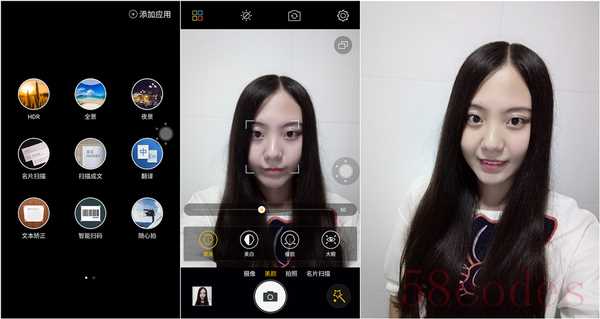 在拍照功能上,金立M6支持的拍照模式十分丰富,名片扫描、扫描成文、翻译、扫码、GIF动画等几乎我能想到的功能它都涵盖了,前置镜头还支持磨皮、美白、瘦脸、大眼四种美颜效果的自定义。