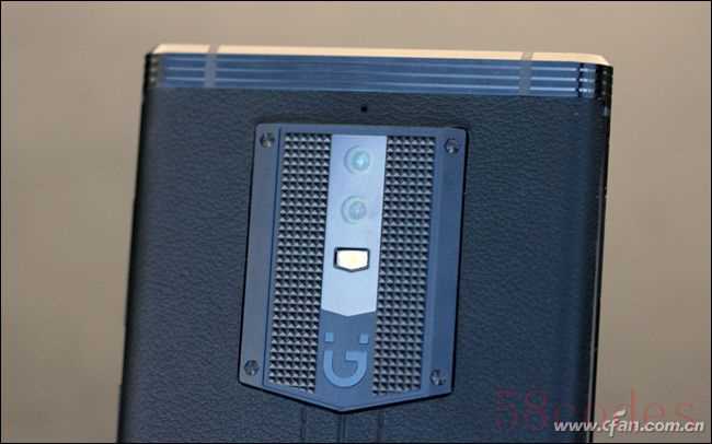 金立M2017的背部设计应该算是最醒目的存在。首先就是将摄像头、闪光灯和金立的笑脸Logo都嵌入到了一个徽章的装饰上。这个徽章两侧也加入了凹凸纹理,平放在桌面上时可以避免划伤镜头玻璃。