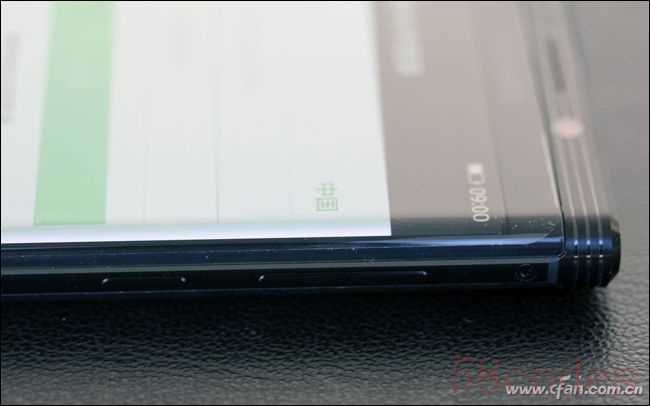 金立M2017的顶部集成了光感元件、听筒和前置摄像头。由于M2017整个机身都是黑色,所以这些孔隙有着半隐藏的效果。