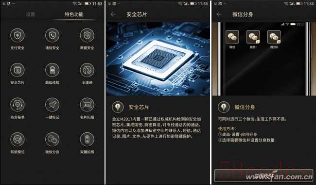 自M6开始,金立引入了安全芯片概念,在硬件层面保障了商务用户的信息和隐私安全。作为M6的升级版,M2017自然也延续了安全芯片设计,并在系统层面进行了更多优化。