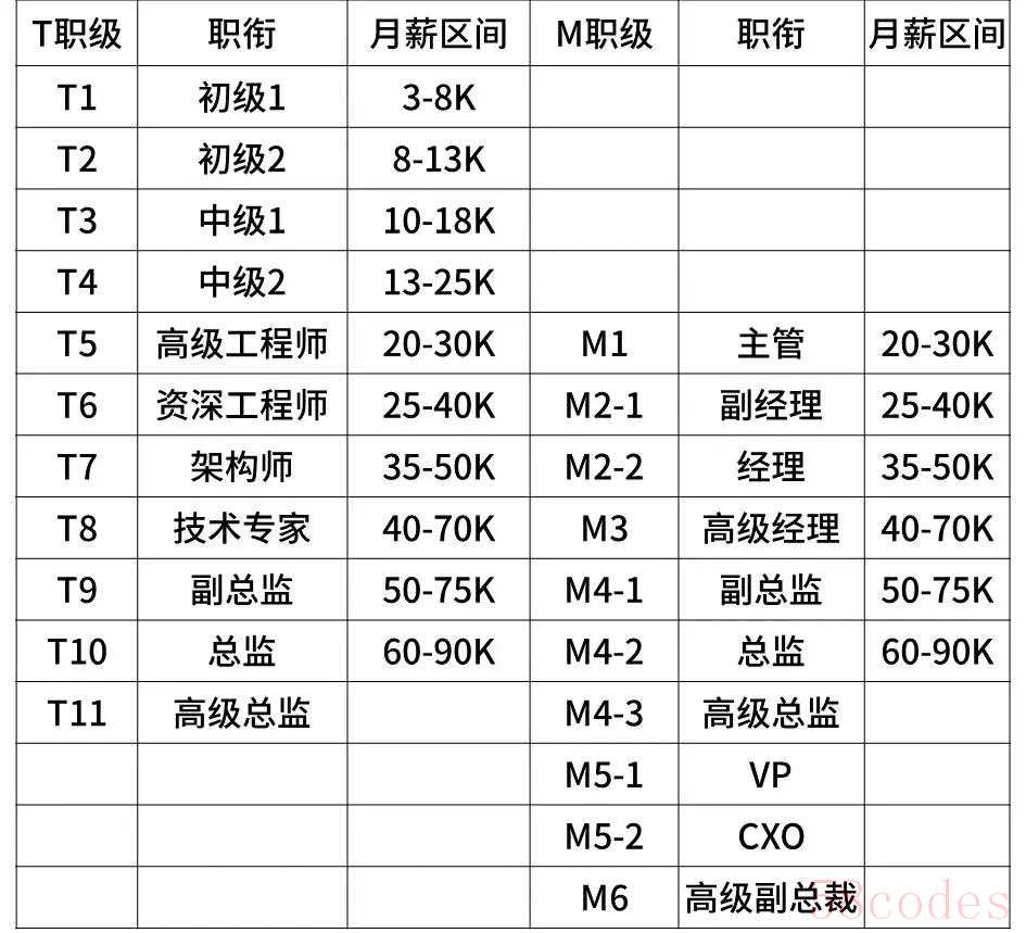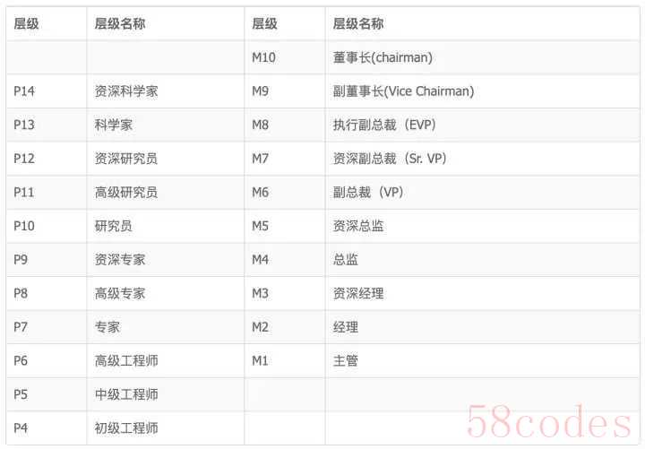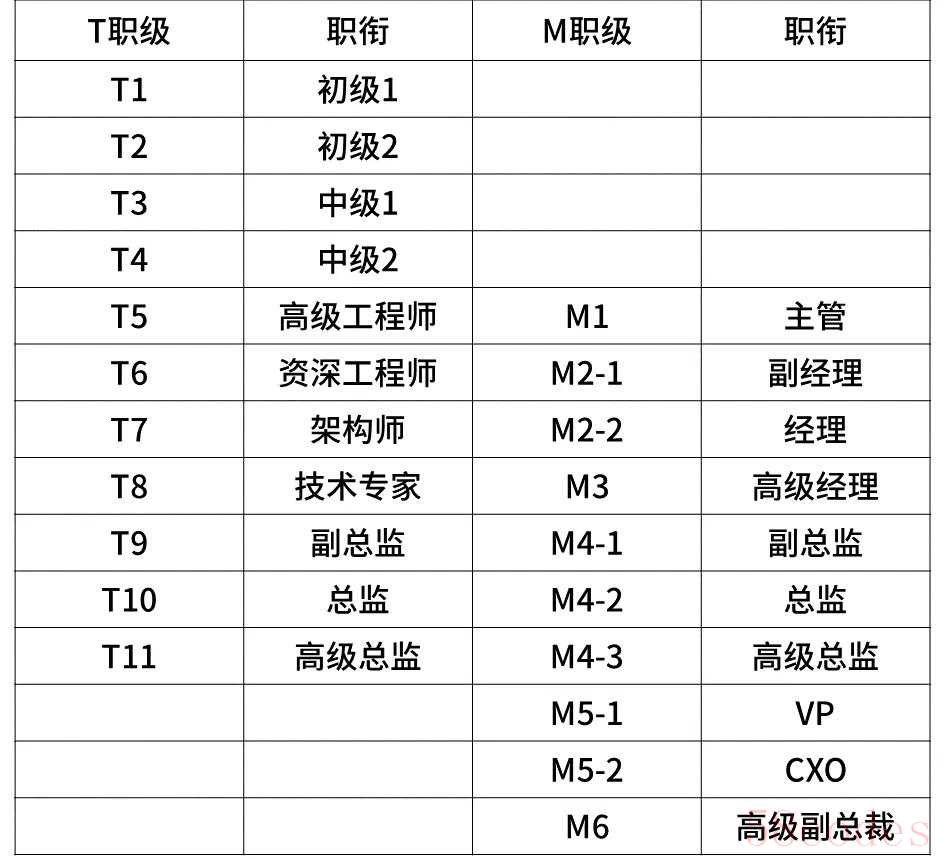 - 一套体系是M路线,即管理者路线【M序列=管理岗】,从M1到M10