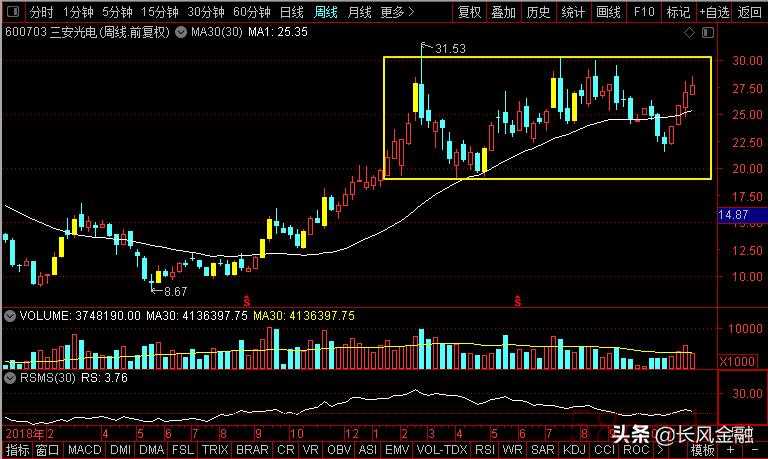 目前三安光电自20年2月份就开始做横向盘整,迄今已经超过9个月,后续关注是否能够有效突破盘整,同时成交量也出现放量迹象。