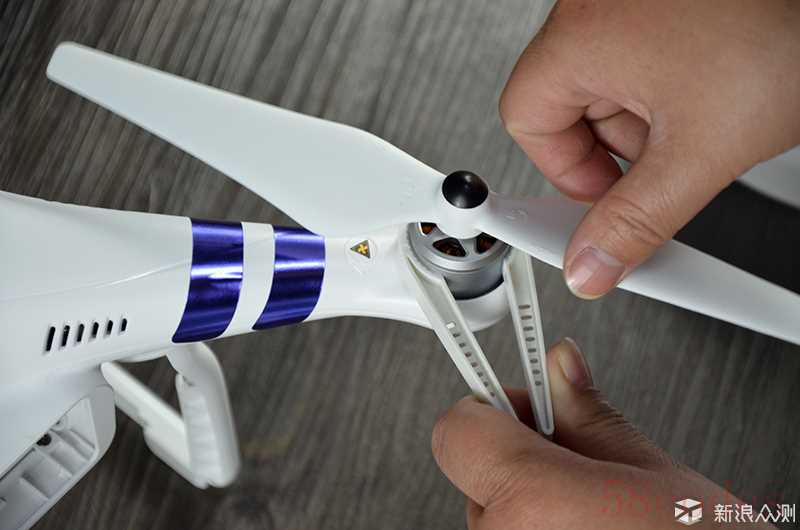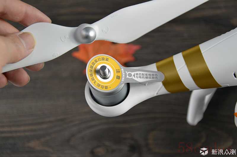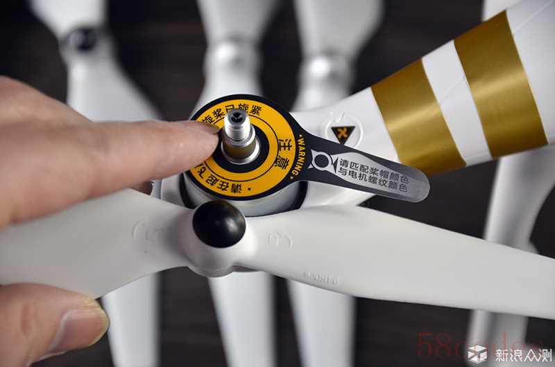 精灵3出厂默认只有两个旋臂贴有土豪金色的贴纸,配件附带蓝、红、灰、紫四种颜色,笔者随意挑选了两个喜欢的颜色贴上去,效果还不错哈。主机上四个螺旋桨是整个安装过程当中最重要的一个环节,下面我们看看应当注意哪些内容。