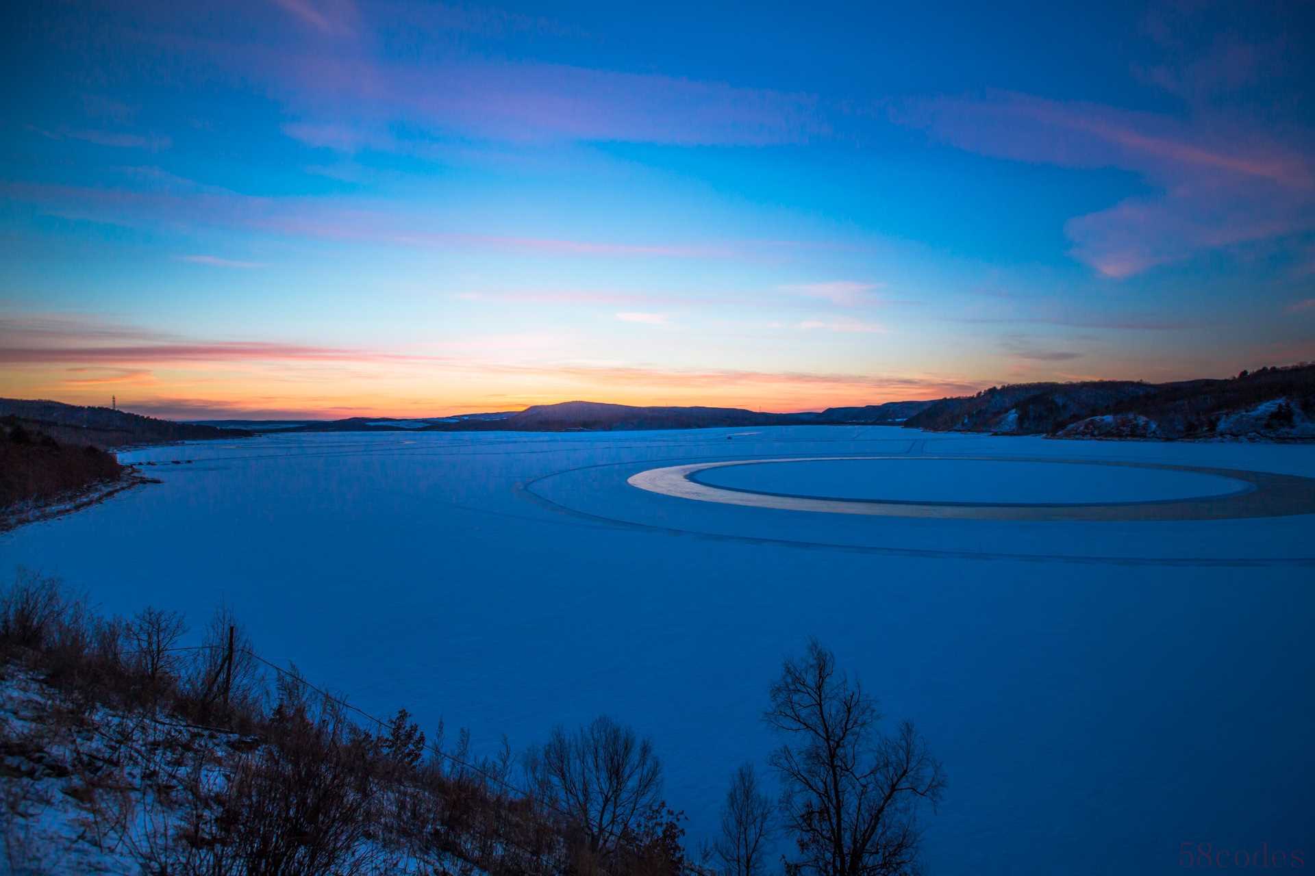 ▲我们绕着小路找到的一个人迹罕至的水库,让这一整片雪原只留下我们的脚印。